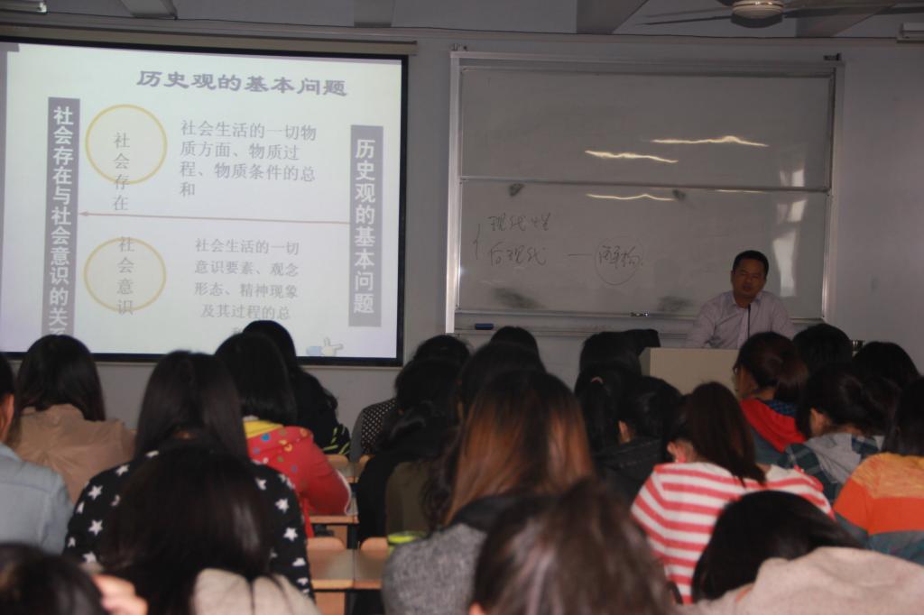 组织本学院教师以及部分学院兼职思想政治理论课教师共十五人,在6#404听取了由李包庚老师主讲的教学观摩课:“马克思主义基本原理——社会基本矛盾及其运动规律”。李老师以“学生小叙”的形式拉开课堂序幕,并以其饱满的声音和幽默的教风展开了《社会基本矛盾及其运动规律》的课堂教学。参加观摩的学院督导委员会主任、马克思主义基本原理教研部的负责人及其他老师一致认为:本堂教学观摩课,教学方法新颖,运用了探究式的教学方法,改变了教师满堂灌的做法,学生积极参与课堂学习;教学内容丰富,信息量大,教学逻辑严谨,教学案例生动、贴近现实,使得相对深入的哲学理论能够深入浅出,从而为学生所接受。教师讲课充满激情,幽默风趣。是一堂具有特色的、达到教学目标的思想政治理论课。