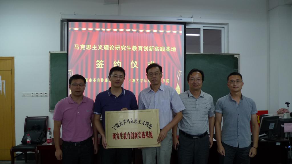 与宁波市委宣传部理论处共建的“马克思主义理论研究生教育创新实践基地”举行签约、揭牌仪式。市委宣传部理论处江再国处长与四虎影院