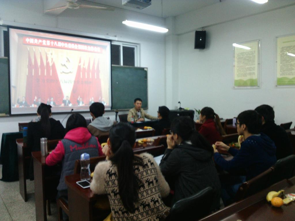 2014级全体研究生在102会议室举办了第一期班级学术沙龙,本次沙龙活动主题为:“秋风习习——学习习近平总书记有关依法治国重要精神”。本次沙龙活动由2014级班长邴建伟主持,并按不同专业分为3组。