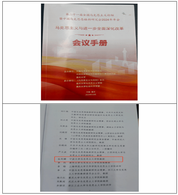 2024年10月19日,第二十一届全国马克思主义论坛暨中国马克思恩格斯研究会2024年年会在重庆召开。会议由中国马克思恩格斯研究会、中共中央党史和文献研究院第四研究部、重庆大学联合主办。四虎影院 杜利娜教授参加本次会议,并在会议分论坛上作题为《马克思主义正义观的中国叙事及原创性贡献》的报告发言。