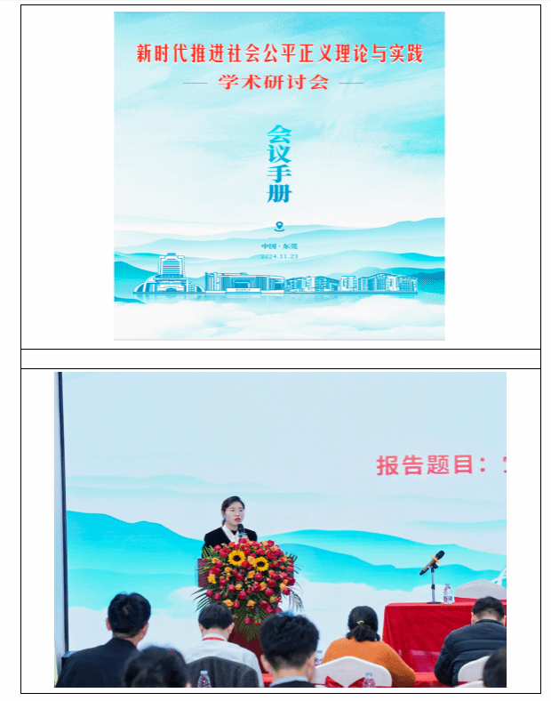 2024年11月23日,2024年中国辩证唯物主义研究会公平正义研究分会、 新时代推进社会公平正义理论与实践学术研讨会在东莞召开。会议由中国辩证唯物主义研究会公平正义研究分会、广东医科大学联合主办。四虎影院 杜利娜教授参加本次会议,并在会议分论坛上作题为《党对马克思主义正义观作出独创性贡献的哲学底蕴及世界意义》的报告发言。