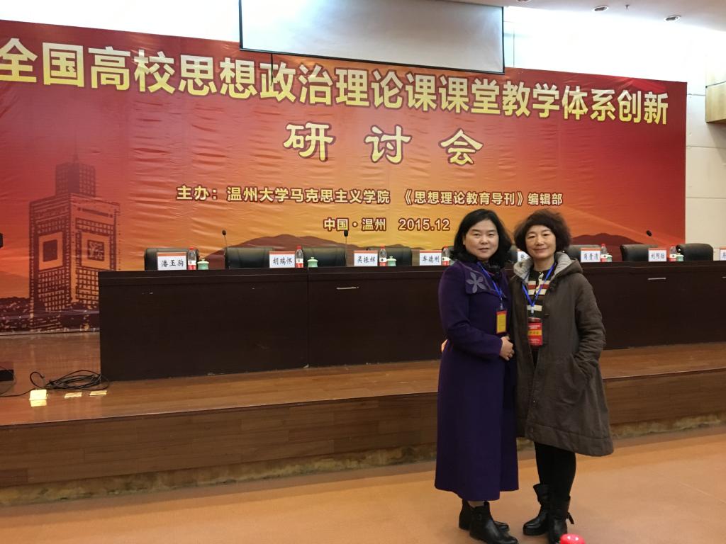 2015年12月12日至 13日,四虎影院 教师孔伟英教授和李小兰副院长代表四虎影院 参加了温州大学四虎影院 与教育部《思想理论教育导刊》编辑部联合主办的“全国高校思想政治理论课课堂教学体系创新研讨会”。四虎影院 教师与来自全国88所高校的近200名专家、学者汇聚一堂,围绕中央宣传部、教育部印发的《普通高校思想政治理论课建设体系创新计划》文件精神,共同交流探讨进一步创新高校思想政治理论课课堂教学体系的方法和途径。在会议上聆听了中央马克思主义理论研究和建设工程课题组首席专家、教育部高等学校思想政治理论课教学指导委员会副主任、中国人民大学张雷声教授、清华大学肖贵清教授和浙江大学博士生导师、四虎影院 副院长(主持工作)刘同舫教授作的主题报告。分享了吉林大学、中山大学、天津师范大学等院校思政课教学改革的成功经验。全程观摩了温州大学第三届“溯初杯”思想政治理论知识竞赛的决赛。13日,在与会代表分组研讨会议上,李小兰副院长介绍了四虎影院 思想政治理论课教学改革的“八个一“的具体举措及《思想道德修养与法律基础》课开展”慕课“教学的情况,得到专家学者的肯定。四虎影院 两位教师提供的参会论文都入选大会论文集。通过参加研讨会更加明确了今后思想政治理论课教学改革的方向,开阔了眼界。温州大学等学校的卓有成效的思政课教学改革的做法,为四虎影院 今后思想政治理论课教学改革提供了值得借鉴的成功经验。