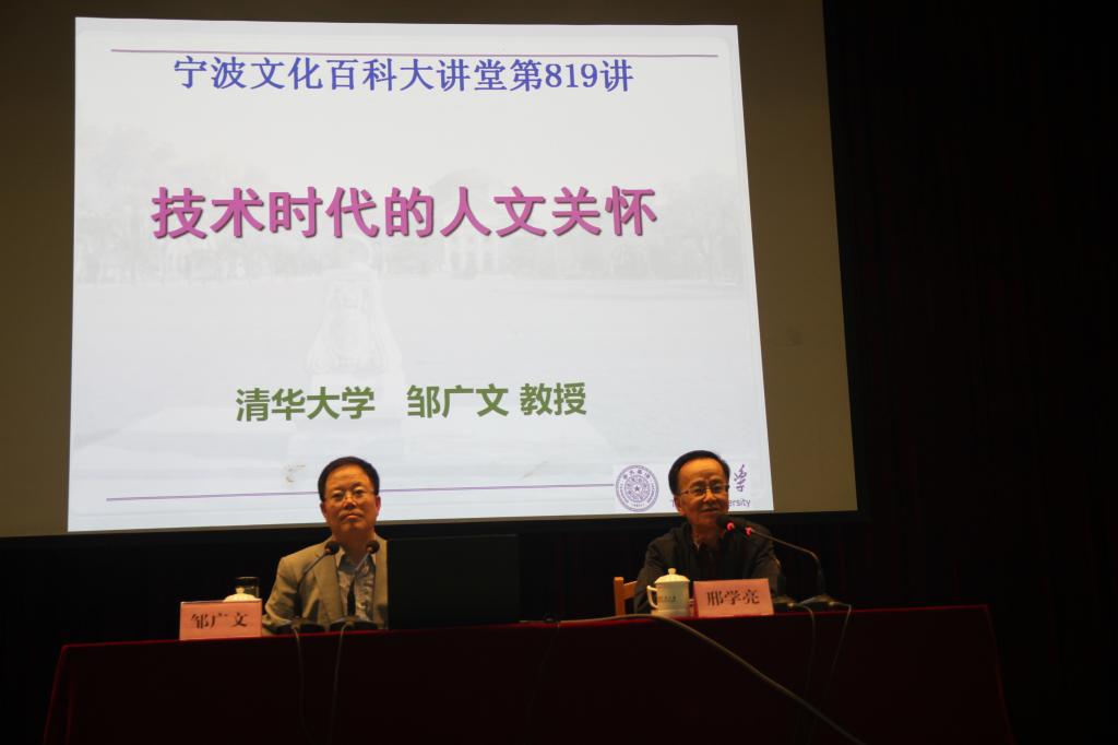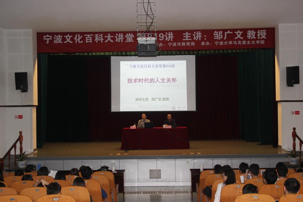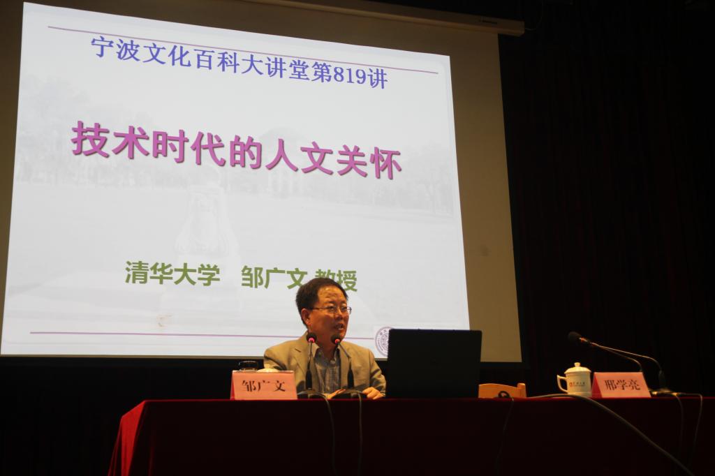5月22日下午,《宁波文化百科大讲堂》第819讲在锦绣小剧场举行。来自各学院200余名师生聆听了清华大学邹广文教授所作的题为《技术时代的人文关怀》的讲座。本次讲座由大讲堂组委会执行主任、原宁大党委副书记邢学亮主持,由四虎影院