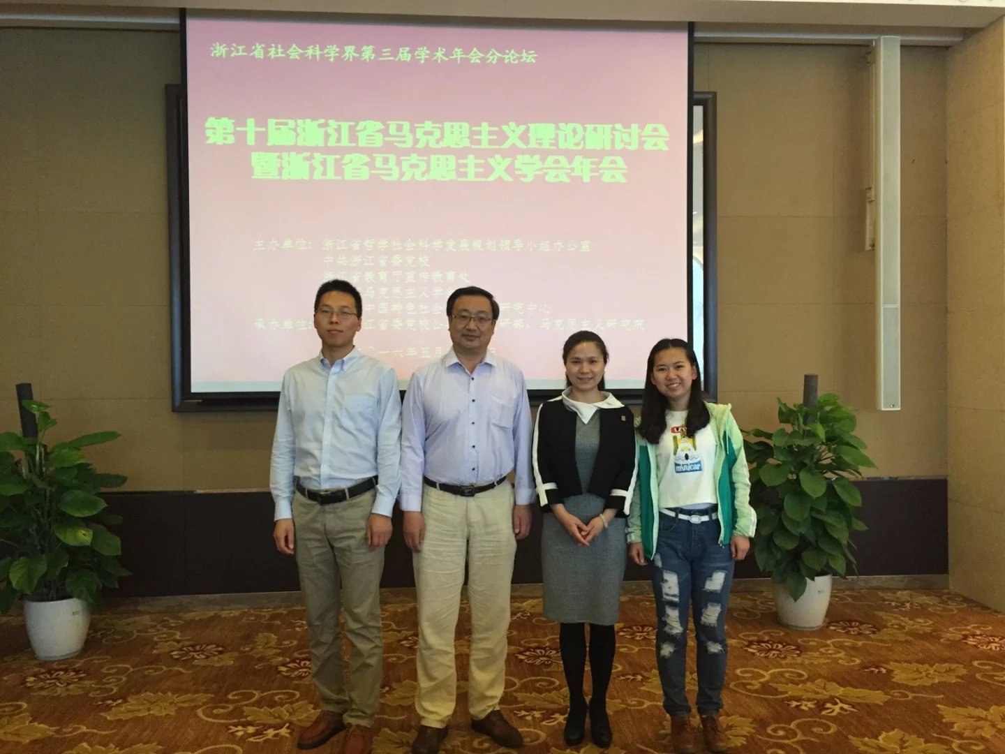 肖东波教授、黄秀蓉副研究员、尚延波和王宁宇2位研究生参加了会议。肖东波教授作为点评专家对大会发言作了精彩点评,黄秀蓉、王宁宇撰写的《“四个全面”背景下的高校基层服务型党组织建设研究》和尚延波撰写的《习近平治国理政思想探赜》两篇论文荣获2016年“第十届浙江省马克思主义理论研讨会”优秀奖。