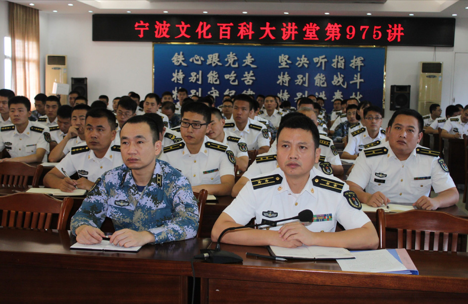 9月26日,应中国人民解放军92899部队的邀请,由宁大四虎影院 副教授鲍展斌主讲的宁波文化百科大讲堂第975讲:《实践论》与《矛盾论》导读走进军营,部队骨干以上听众110人左右聆听了讲座。