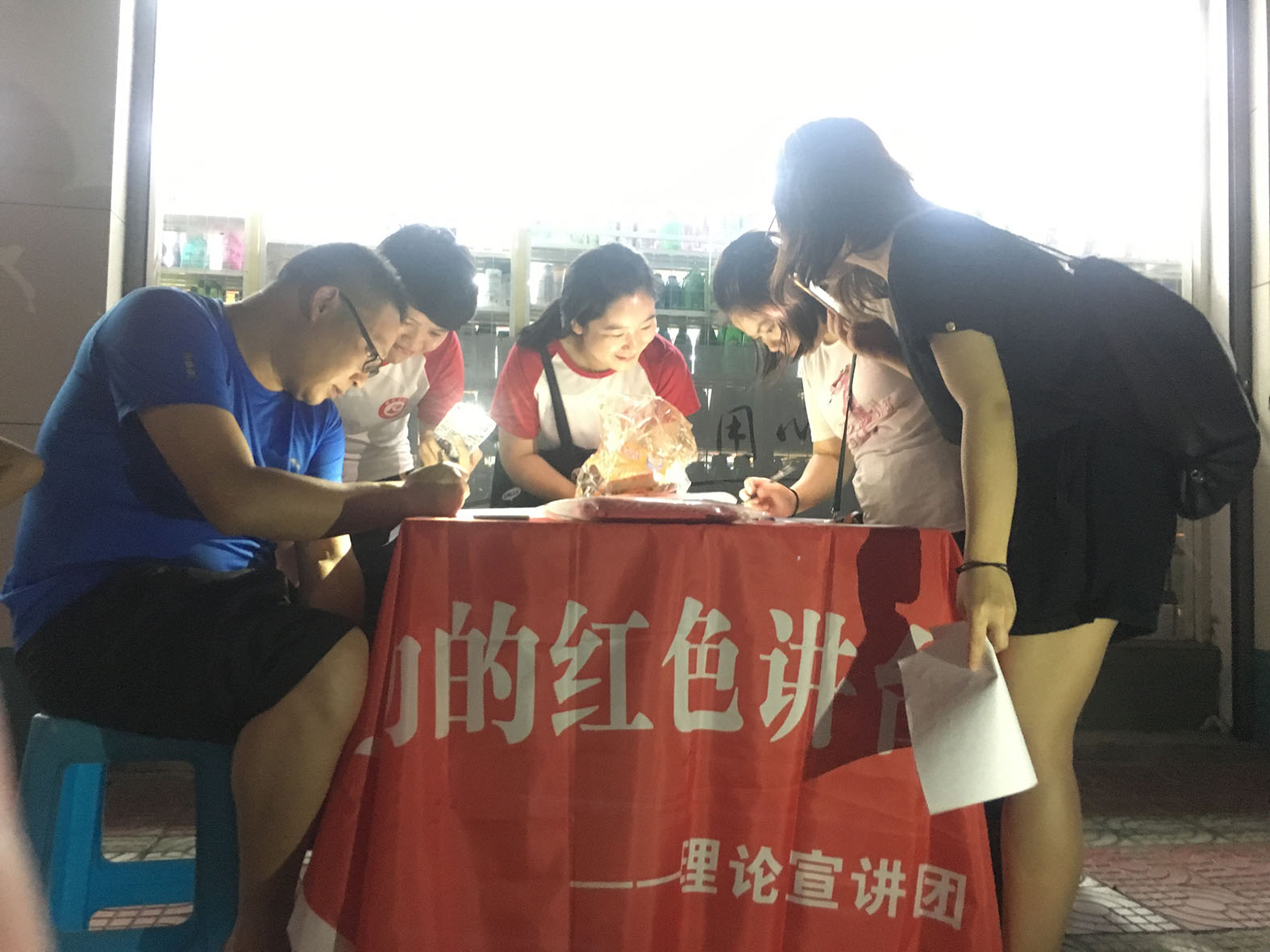 在此期间,团队成员进行了问卷调查,并选取具有代表性的村庄进行深度考察。陈荟吉同学还在沙柳街道办事处开展了以“习总书记眼中的乡村幸福”为主题的理论宣讲,结合三门沙柳街道的实际情况对十九大乡村振兴战略进行解读,获得了村委和村民们的阵阵掌声。