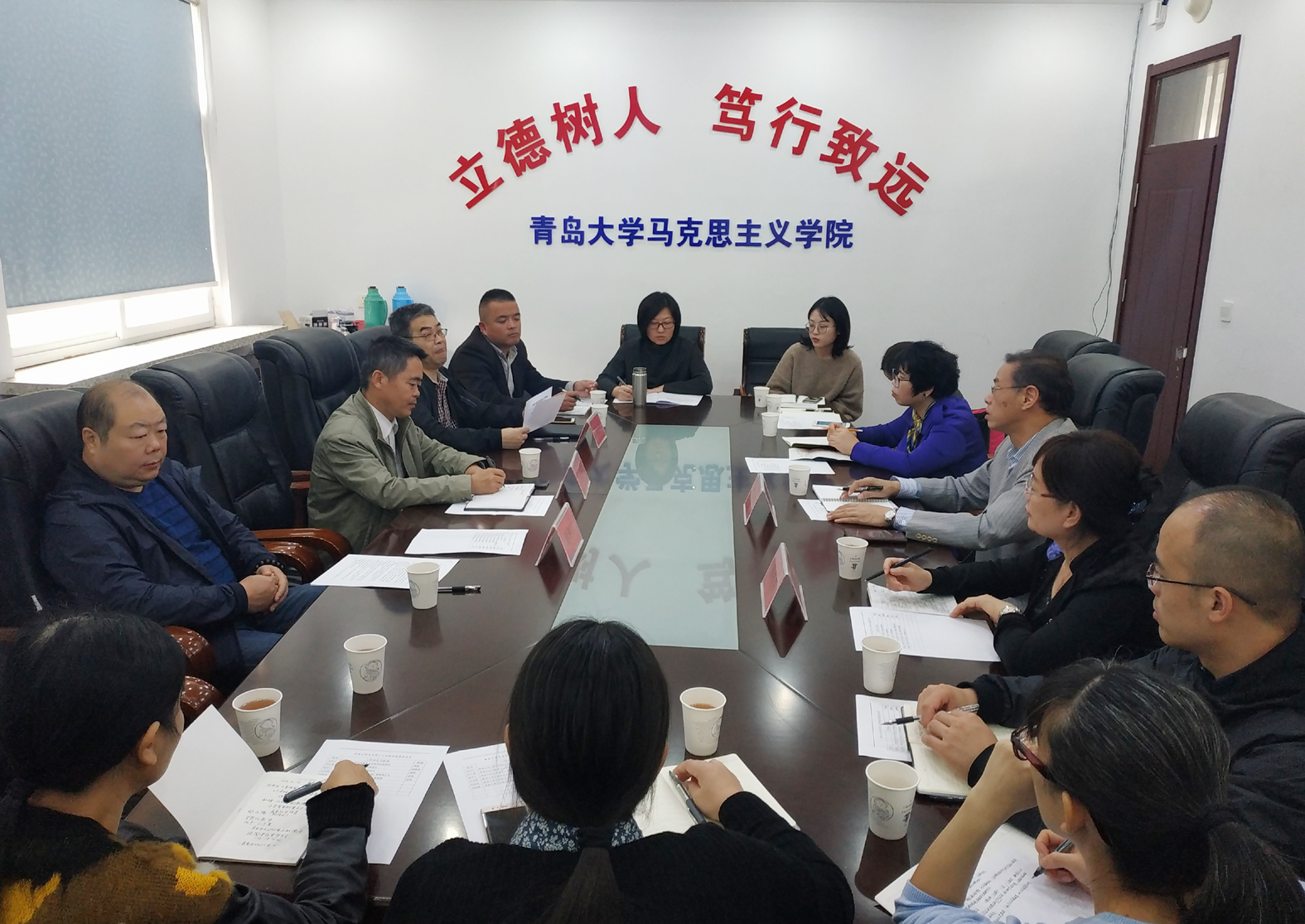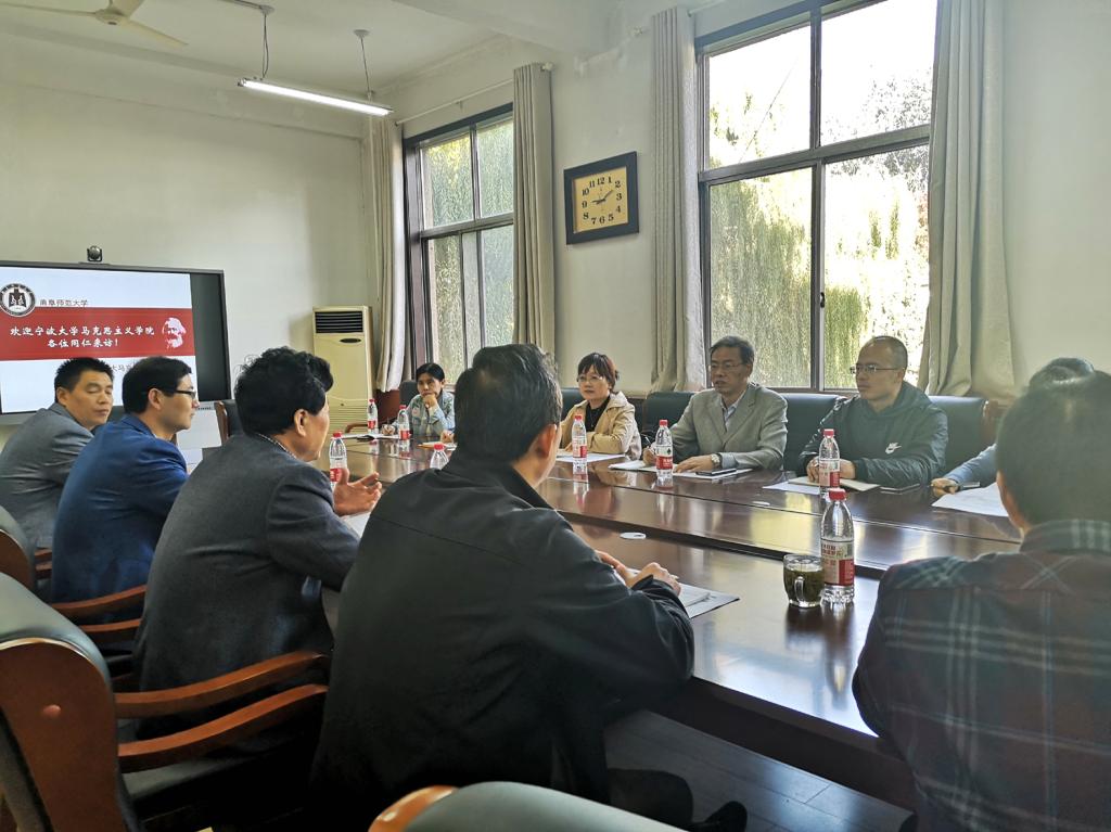 党委书记张立兴、副院长辛宝海、院长助理刘宝杰、张方玉教授、陈洪友副教授、张玉主任分别就学院的曲阜师范大学马学科建设的基本情况进行了介绍,该院在教学上将儒家文化融入思政课教学之中,创办马克思主义人才卓越班,开展儒家文化和马克思主义理论双经典研读,注重第一堂课教学的示范效应等。陈正良院长对曲师大马院的接待表示感谢,介绍了宁大马院在教学科研上的进展和创新做法,并对该院立足于地方特色进行教学创新,将地域文化优势转化为学科优势的做法印象深刻。双方约定开展在研究生保送上的交流与合作。