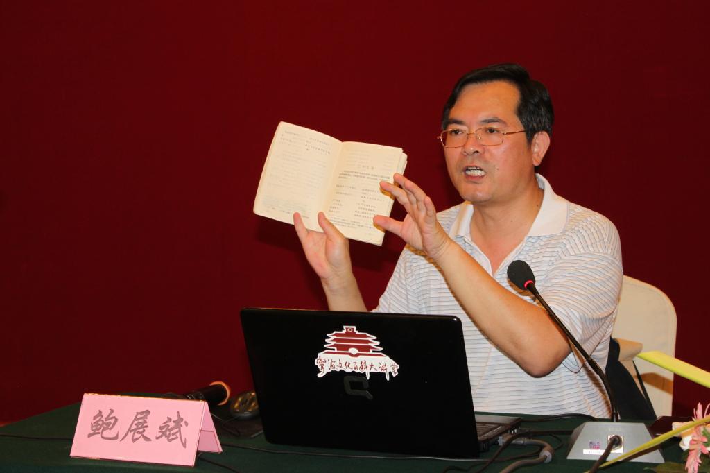 的鲍展斌老师,手中拿着个人收藏的一块玉石,侃侃而谈,他的课程之旅又一次开启了。