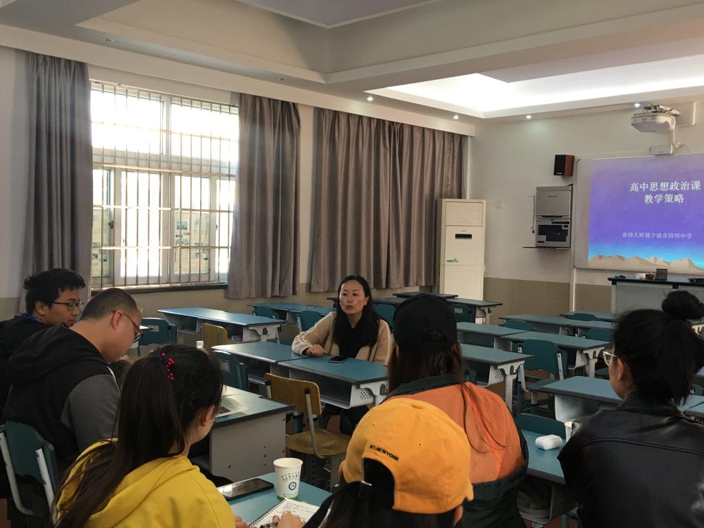 近日,四虎影院 2016级思想政治教育专业全体同学专赴镇海中学、宁波二中、宁波四明中学等高中思想政治课堂分别倾听了宁波名师——包嘉珠、毕建红和许溶溶老师的精彩一课。听课结束后,三位老师还就思想政治课课堂教学设计、思想政治课课改情况以及如何做好一名优秀的思政课老师等话题,和同学们作了深度交流。同学们纷纷表示收获满满。