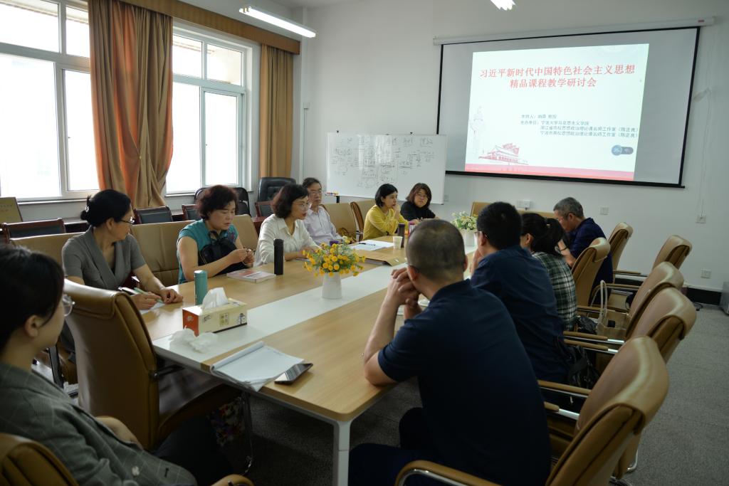 312会议室顺利举行。副院长曲蓉、浙江省高校思想政治理论课名师工作室和宁波市高校思想政治理论课名师工作室负责人陈正良、院教学督导及部分教师等参加了研讨会。此次研讨会作为以向中共浙江省委组织部推选精品课程的前期准备会,及陈正良教授名师工作室的教研活动。