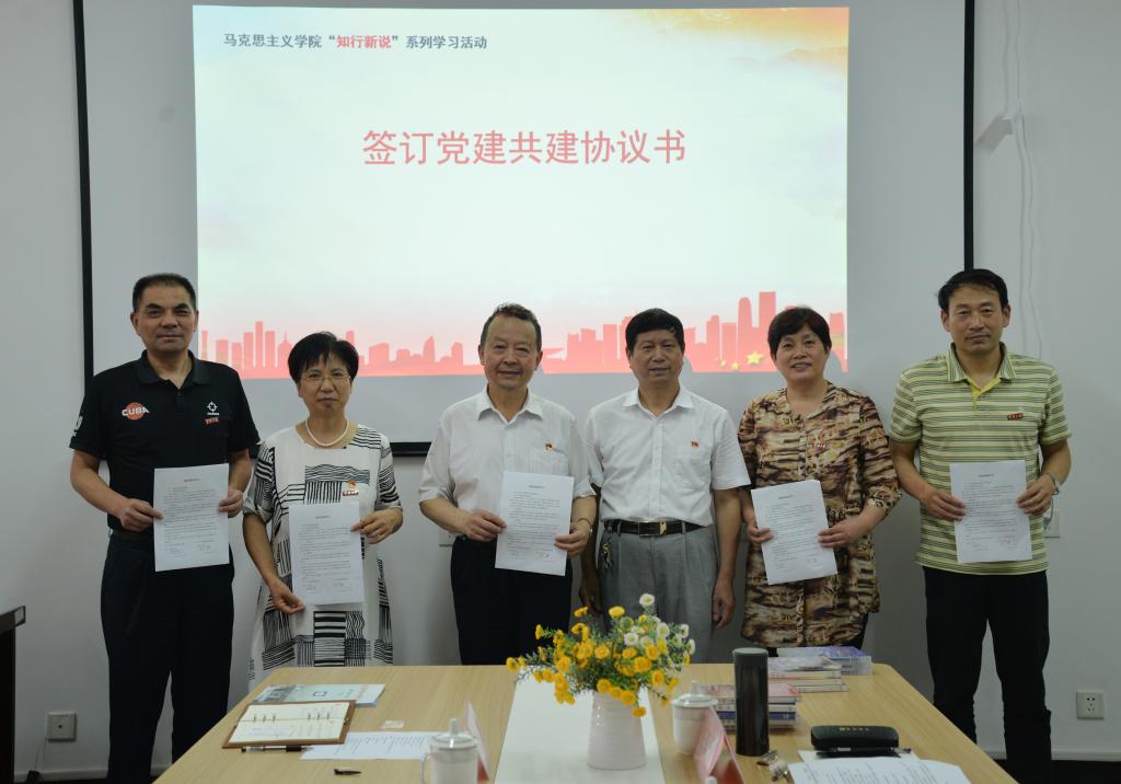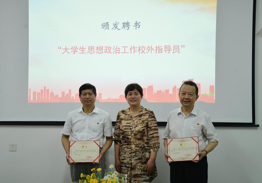 各学院同市新四军研究会签订党建共建协议,确立了共同建设学院党建的合作关系。刘友女向叶小湖和王慕洲颁发聘书,聘用其为大学生思想政治工作校外指导员。