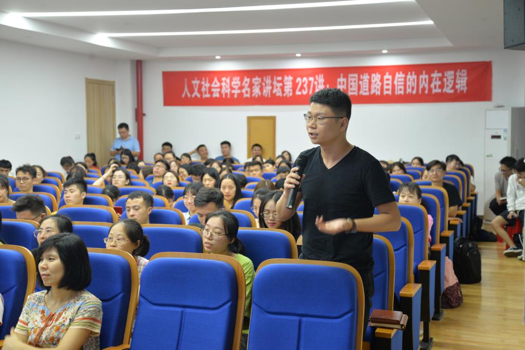 祝黄河教授的报告高屋建瓴,旁征博引,从学术高度、理论深度上,启迪与会师生进一步理解了中国道路自信的内在逻辑。祝教授还与现场师生进行了热情的互动交流。与会师生受益匪浅、意犹未尽。