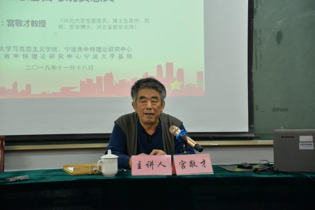 宫敬才通过宏观和微观两个方面对《马克思1844年的经济学哲学手稿》展开阐述。在宏观层面上,宫敬才从马克思主义中国化、文献学及文本内容、以西解马、储藏学和回到原生态这五个方面来讲述马克思主义哲学研究范式,让更加明白掌握经典文献的重要性,同时也让学生们学习到如何去从宏观方面读懂马克思的经济学哲学手稿。在微观层面上,宫教授对马克思《1844年经济学哲学手稿》的具体内容的理论逻辑和现实意义进行了阐述。他从手稿的语境问题、手稿的中心思想、文献资料的线索问题和手稿的理论缺陷和手稿中人化的自然概念等这五个方面来阐述。微观层面的论述,让学生们更深入地了解和认识马克思《1844年经济学哲学手稿》的理论逻辑,学习到经济学和哲学是互为内生变量的关系以及手稿的中心思想是质疑和批判资本主义私有财产制度。