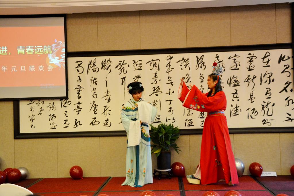 学院团委、研究生会和学生会联合举行了以“携手共进,青春远航”为主题的2020年新年联欢会,迎接即将到的元旦佳节。院党总支书记刘友女、执行院长李包庚、副院长曲蓉以及辅导员杨曼应邀参加了联欢会。