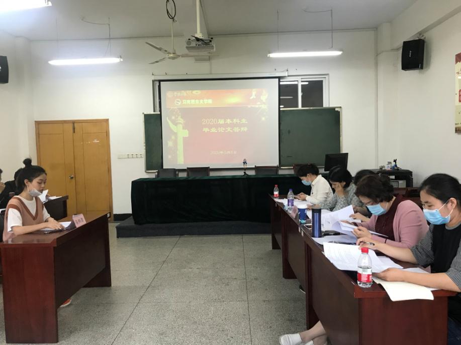 2020届本科生毕业论文答辩会顺利举行。因受疫情影响,此次答辩会分为线上和线下两组同时进行。到校学生在学院进行答辩,未到校学生在钉钉群答辩,答辩组教师均到校参加答辩会。学院高度重视本科毕业论文质量,答辩程序严谨规范。答辩会第一组由曲蓉副院长,答辩会第二组由系主任张小芳老师主持,其他8位答辩委员会成员参加了本次答辩会。