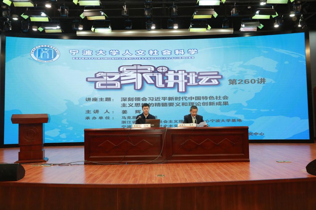 11月28日上午,中国社科院党组成员、当代中国研究所所长、马克思主义研究院院长姜辉教授做客我校人文社科“名家讲坛”第260讲,在真诚图书馆报告厅作《深刻领会习近平新时代中国特色社会主义思想的精髓要义和理论创新成果》的报告,同时也开启了“宁波市习近平新时代中国特色社会主义思想溯源工程研究中心”2020年高端论坛第一讲。校党委副书记冯杰主持了报告会。
