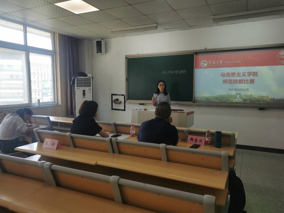 第十五届师范生教学技能竞赛选拔赛分三组在包玉书科学楼8号楼顺利举行。2018级思想政治教育师范专业全体本科生34人均参加了本次比赛。宁波市教学名师包嘉珠老师、许溶溶老师、陈敏老师、学院副院长曲蓉老师、专业系主任张小芳老师、专业系副主任郑善庆老师、学院张庆花老师、苗小露老师、陈兴亮老师担任评委。