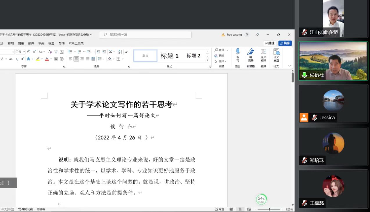 博士生导师侯衍社教授应邀以《关于学术论文写作的若干思考》为题,作学术交流分享的云报告。这也是四虎影院