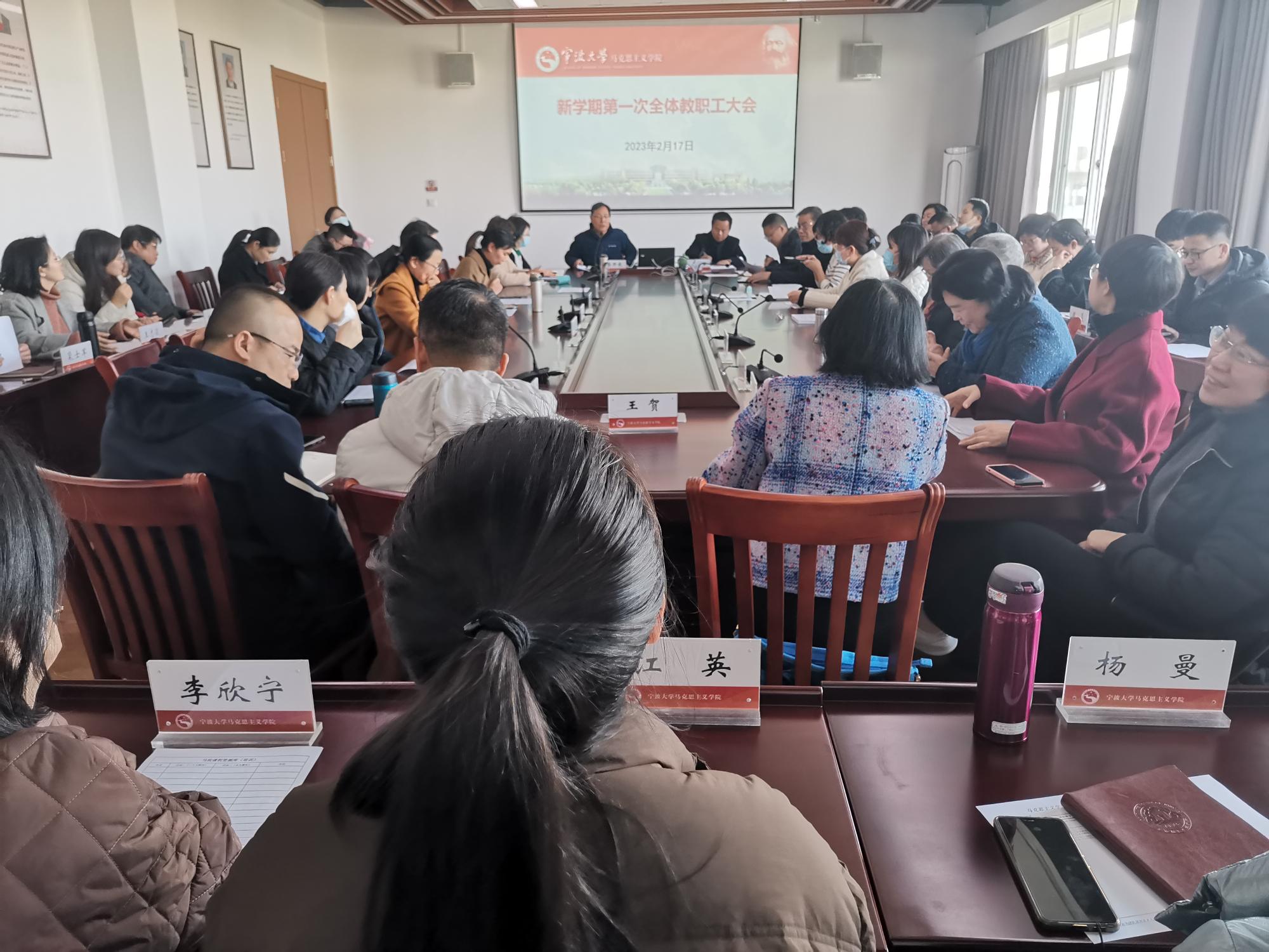 在513会议室组织召开新学期第一次全体教职工大会。会议传达了学校2023年寒假中层干部扩大学习会精神,并对新学期学院工作进行了部署。