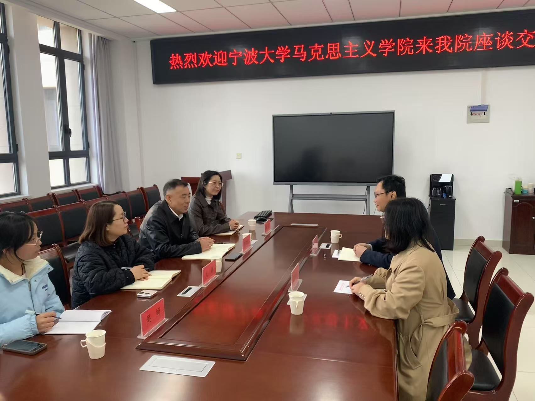 4月3日,两位教师来到延安大学马克思主义学院进行座谈交流,围绕教学日常管理、思政专业建设、思政实验室建设、教学成果奖培育等内容进行了研讨。延安大学马克思主义学院院长高布权、副院长亢鸽及相关教师参加了座谈。