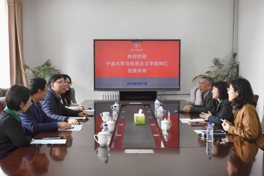 4月14日上午,学院一行与东北师范大学马克思主义学部举行座谈。东北师范大学马克思主义学部党委书记任丽涛详细介绍了学部在学科建设、建院历史、教学科研等方面的整体情况和先进经验。我院党委书记蒋开东分享了宁波大学马克思主义学院的建院历史、办学现状及未来发展设想,表示东北师大马克思主义理论学科作为国家“双一流”学科、A+学科,在学科建设、科学研究和人才培养领域成就显著,成功经验值得学习借鉴,希望通过此次交流,能在教师互访、课题合作、学术交流、资源共享等领域深化合作;学院一行还就“思政课教学改革”“大中小思政一体化建设”、教师队伍建设、理论宣讲团建设、学生就业工作等问题进行了深度交流。