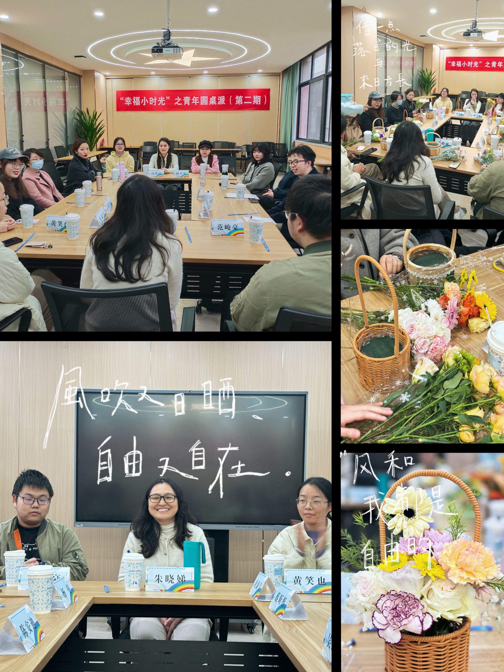 2024年12月4日,“幸福小时光”之青年圆桌派(第二期)在锦绣207如期举行,国家二级心理咨询师朱晓娣,学院党委副书记吴莲红、工会主席张小芳、学工办主任杨曼以及10余名学生参加了活动,活动由杨曼主持。
