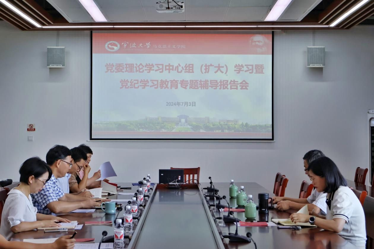 2024年7月3日,马克思主义学院召开党委理论学习中心组(扩大 )会暨党纪学习教育专题学习会,邀请浙江省党纪学习教育“百名骨干讲师团”成员刘友女教授作专题辅导报告,全面解读《中国共产党纪律处分条例》。校党委副书记冯杰及巡听旁听组一行参加此次专题学习会,会议由院党委书记蒋开东主持。