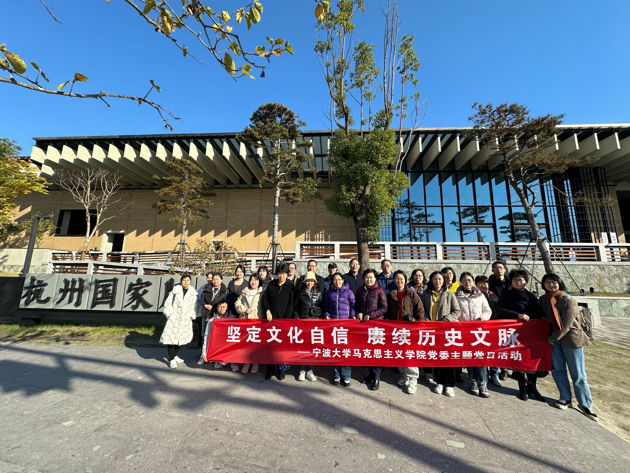 为深入学习贯彻习近平文化思想,贯彻落实习近平总书记在文化传承发展座谈会上的重要讲话精神和全国宣传思想文化工作会议精神,引导广大党员更好担负起新时代新的文化使命,赓续历史文脉,坚定文化自信,12月1日-2日,马克思主义学院党委组织教师党员赴杭州国家版本馆和良渚古城遗址公园开展“坚定文化自信 赓续历史文脉”主题党日活动。