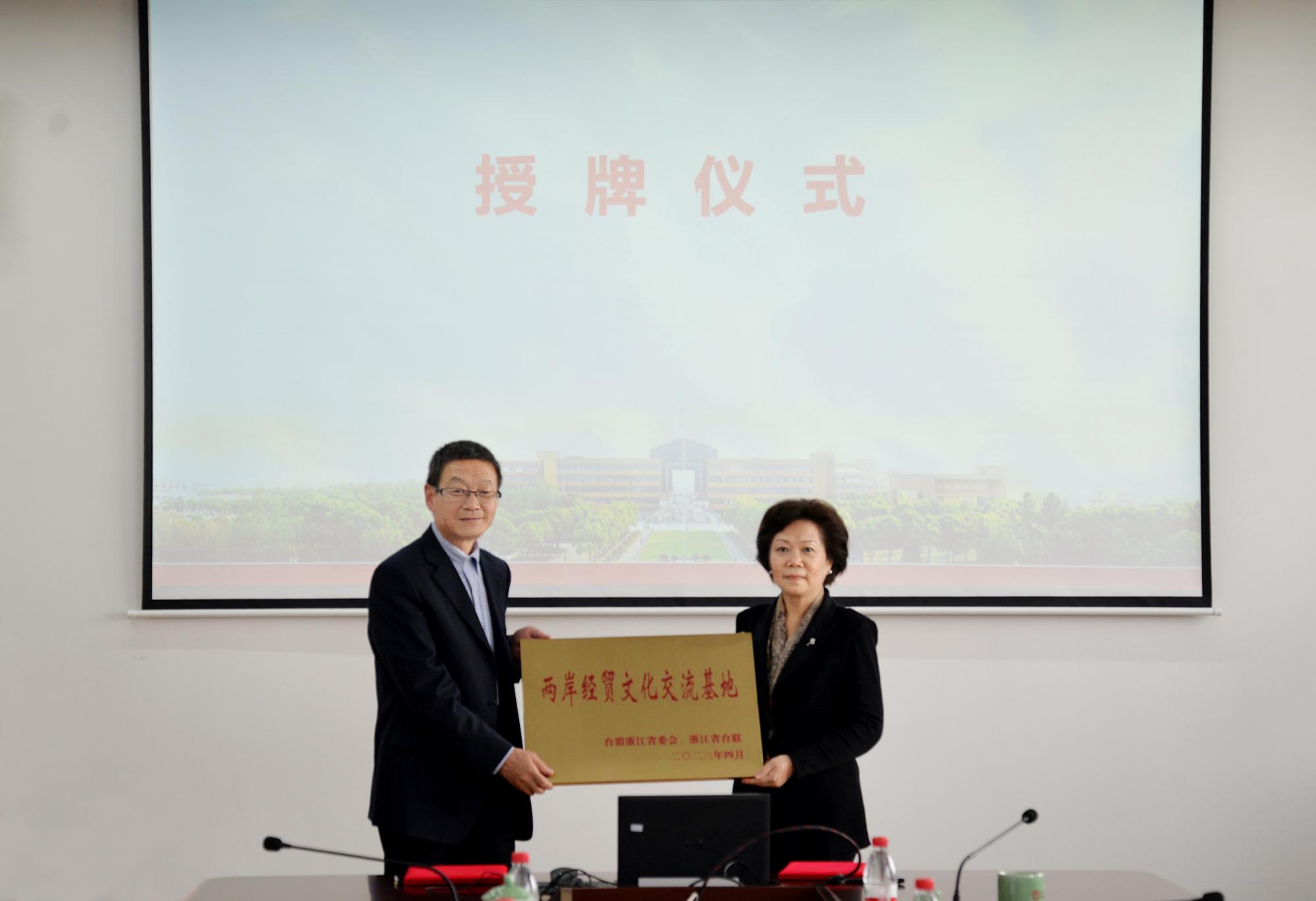 会上,台盟省委会与宁波大学浙江台湾研究院签署了合作框架协议,并进行了“两岸经贸文化交流基地”的授牌仪式。