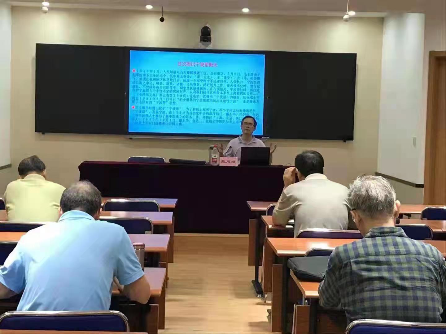 10月15日上午,马克思主义基本原理党支部书记鲍展斌受邀为宁波市老干部党校党员讲《毛主席论宁波传统文化》主题党课。党校校长及学员等30余人聆听了报告。