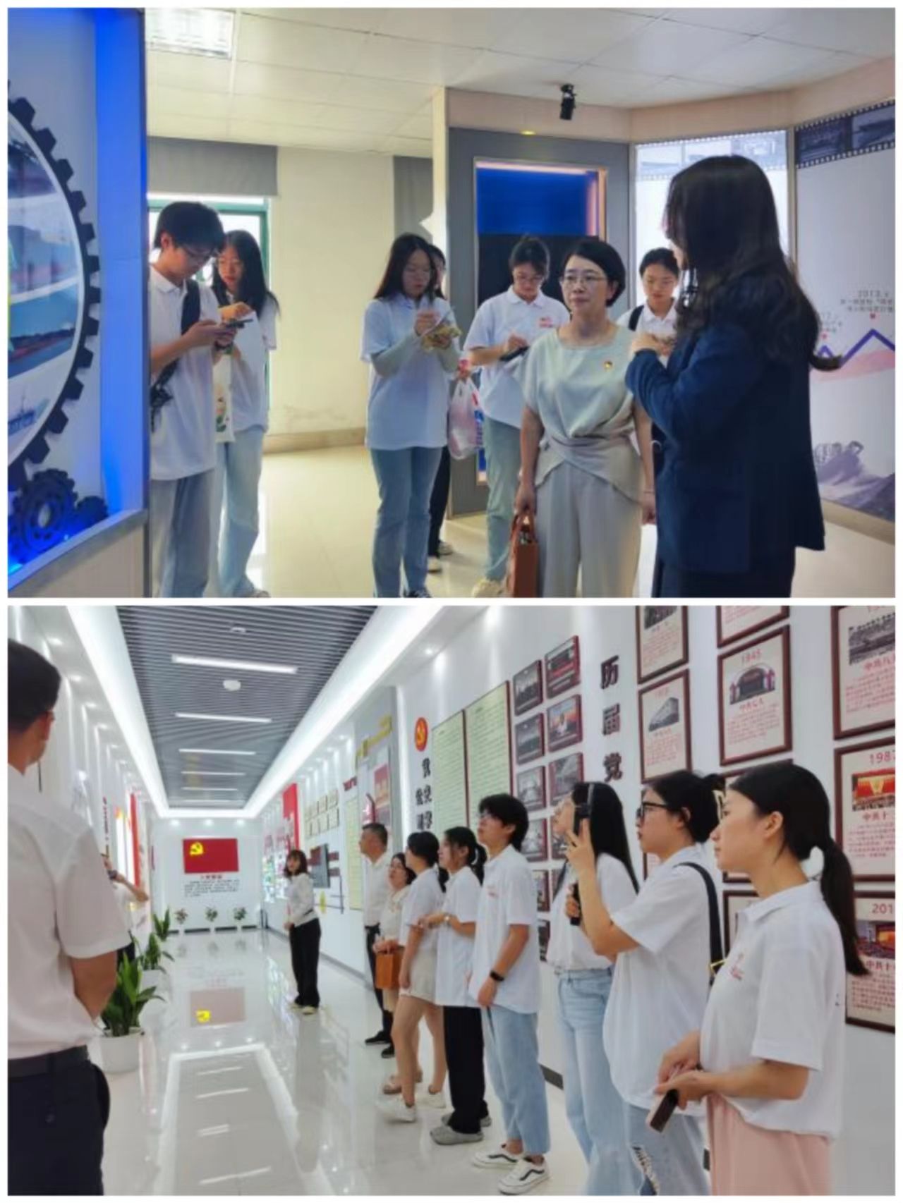 展览馆是最直观表达企业文化与经营理念的载体。实践团队每到一个企业进行调研,首先便是进入企业展览馆,沉浸式模块化、生动化地学习感受企业特色党建做法。虽然企业的展览馆形式多样规模各异,却无不体现出企业孜孜不倦探索以党建促进生产经营发展精神内涵。