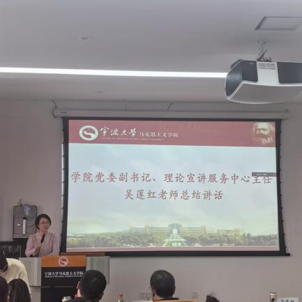 学院党委副书记、理论宣讲服务中心主任吴莲红总结讲话。吴莲红老师感谢了评委老师们的辛勤工作和专业点评,以“热爱之心”、“可能之心”、“动人之心”对理论宣讲团成员提出殷切期望。希望各位宣讲员能够将评委老师的专业指导转化为作品迭代的养分,持续关注“国之大者”与“民之关切”,在深入基层调研中提炼时代主题,精心打磨具有思想深度、情感浓度和传播效度的宣讲作品。