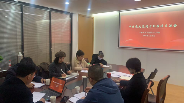 2025年3月19日,宁波大学中共党史党建学科团队召开专题座谈交流会,史守林教授及刘友女教授、郑善庆副教授、王贤斌副教授、朱珂讲师、赵瑛博士、梁兴印博士、方敏博士等参加了座谈。座谈会围绕学科建设、研究院筹建及人才培养等核心议题展开了深入研讨。会议明确了党史党建学科的发展方向,为推进该学科高质量发展凝聚了共识。