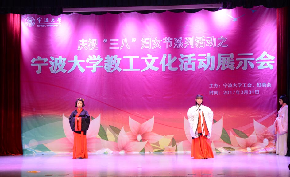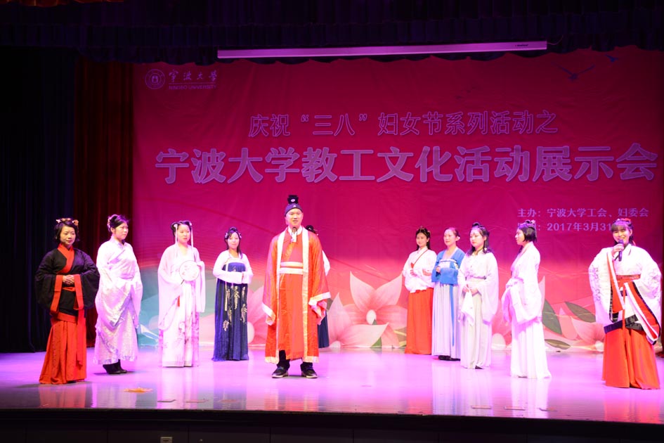 “丽服缤纷展风采,美姿倩影留舞台;马家女儿多奇思,且把古装作时妆。”3月31日下午,宁波大学教工文化活动展示会在锦绣小剧场隆重举行,马克思主义学院分工会表演的节目《梦回汉唐》在强手如林的展示会上,挥洒自如,获得了广泛好评。