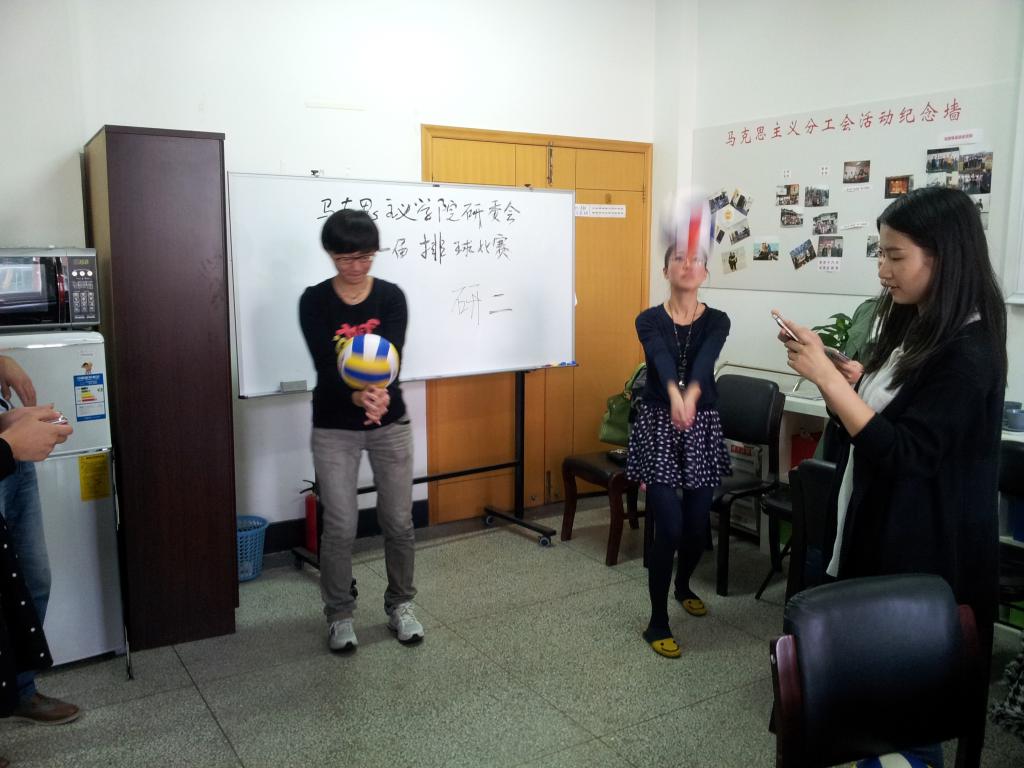 10月24日下午,马克思主义学院举办第一届乒乓球比赛和第一届排球大赛,比赛项目包括:乒乓球男子单打、女子单打、男女混双、定时排球等。比赛在学院学工活动室热烈开展,研一、研二同学积极参与。本次活动不仅让同学们在课余时间放松身心,更增进了研一、研二同学之间的交流与友谊。同学们都期待能有更多的机会参与到此类团体活动当中,感受集体的凝聚力。