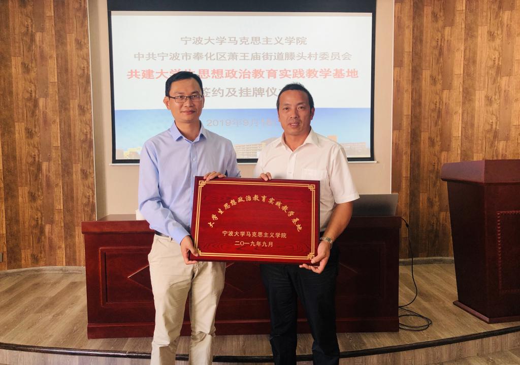 9月18日上午,在学校开展“不忘初心牢记使命”主题教育之际,为做好多样化学习教育,马克思主义学院党总支书记刘友女、副院长刘举、马克思主义中国化党支部和学生理论宣讲团一行来到宁波市奉化区滕头村开展“初心之旅”学习调研活动,双方举行了大学生思想政治教育实践教学基地和共建培训基地的签约及挂牌仪式。