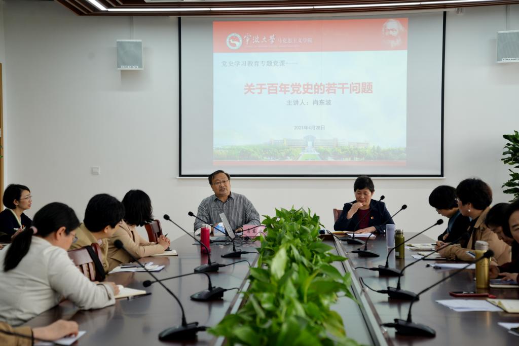 为深入学习贯彻习近平总书记在党史学习教育动员大会上的重要讲话精神,扎实有效开展党史学习教育。4月28日下午,在7号楼513会议室,马克思主义学院退休教授肖东波受邀来院作《关于百年党史的若干问题》专题讲座,带领学院教师学党史、悟思想,牢记初心使命、坚定理想信念。院党总支书记刘友女主持会议。