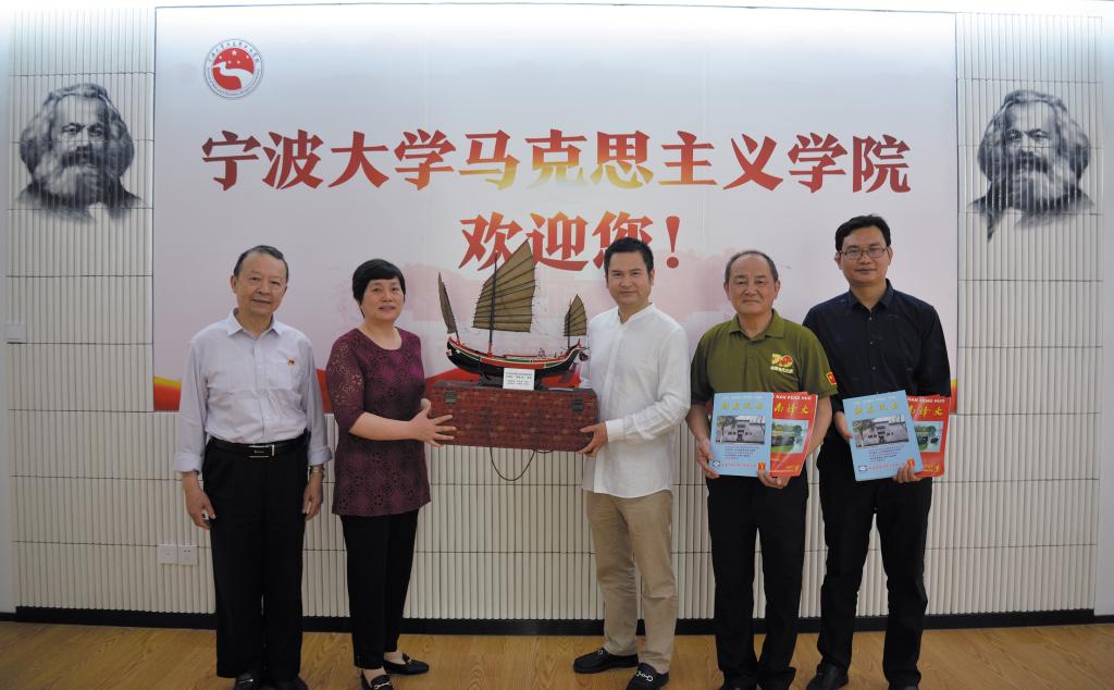 5月8日上午,宁波企业家叶光明、宁波市新四军历史研究会副会长叶小湖一行3人专程来到宁波大学,向学院捐赠了一艘长60CM、宽60cm的“英雄三号”船模,该船模的舵和桅杆取材于原“英雄三号”船板用料。