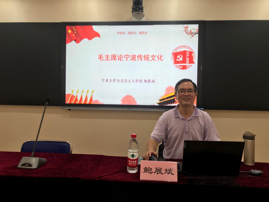 10月15日上午,马克思主义基本原理党支部书记鲍展斌受邀为宁波市老干部党校党员讲《毛主席论宁波传统文化》主题党课。党校校长及学员等30余人聆听了报告。